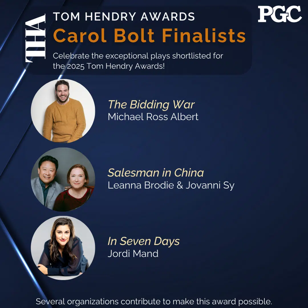 Special thanks to Carol Bolt Award Peer Assessment Panelists: Karen Hines (Chair), Philip Akin, and Robert Tsonos.