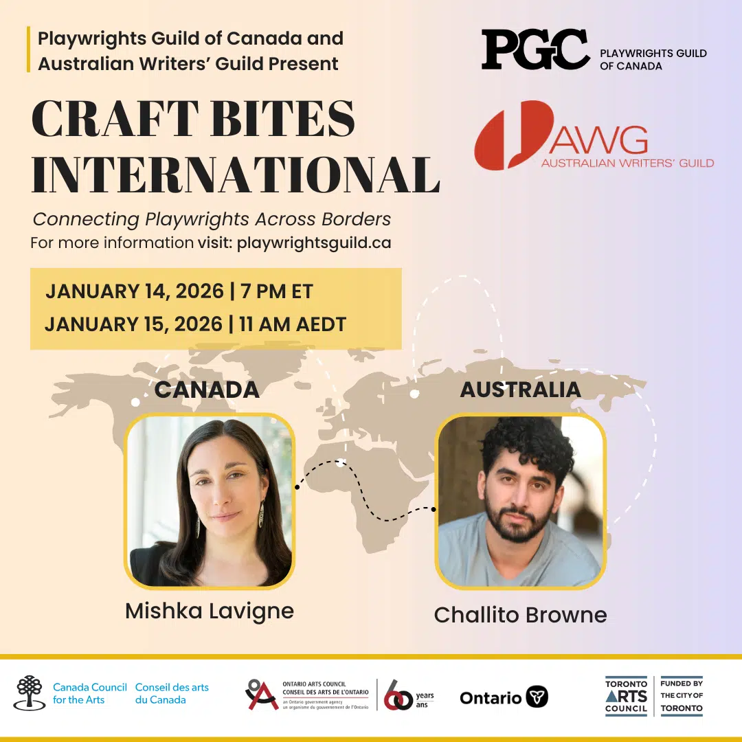 PGC members have been paired up with an international playwright to share their work and discuss the craft of playwriting with one another. You can tune into these live events and get a glimpse of what these theatre creators have been up to!